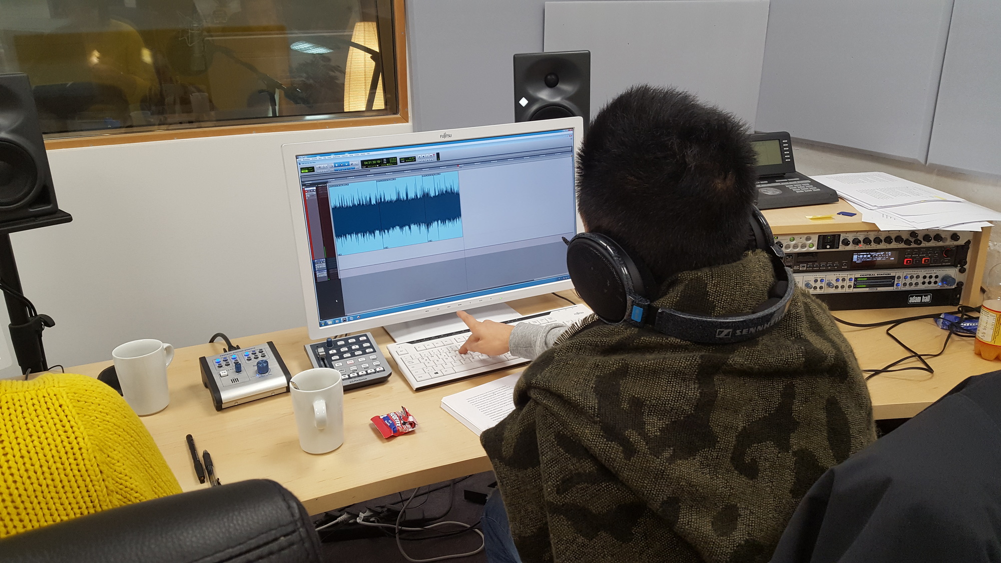 Dritter Schritt: die Aufnahme kann endlich losgehen. In der schallgedämmten Aufnahmekabine im Tonstudio sitzt der Sprecher vor dem Mikro und spricht den Text ein. Ihm gegenüber, durch ein großes Fenster getrennt, sitzen der Regisseur sowie der Tontechniker und überwachen die Aufnahme. Sie geben Hinweise, wie der Sprecher den Text interpretieren soll, passen auf, dass alle Wörter richtig ausgesprochen werden und achten auf störende Geräusche, wie zum Beispiel Papierrascheln. So werden etwa zwei CDs pro Tag aufgenommen. Im Anschluss muss die Aufnahme noch nachbearbeitet werden. Dabei werden wiederholte Passagen, Versprecher, lautes Atmen oder Hintergrundgeräusche rausgeschnitten. Für den Schnitt benötigt der Tontechniker einen knappen Tag pro CD. Nun fehlt nur noch die Aufnahme der Ansage des Titels sowie die Anfangs- und Schlussmusik.